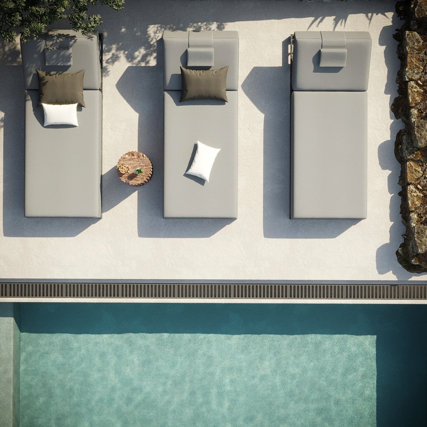 Pixel Şezlong, yalın formu ve geniş uzanma yüzeyiyle dış mekânlarda sakin ve rafine bir dinlenme alanı oluşturur. Havuz kenarında, terasta ya da bahçede konumlandığında mekâna modern ve dengeli bir görünüm kazandırır.