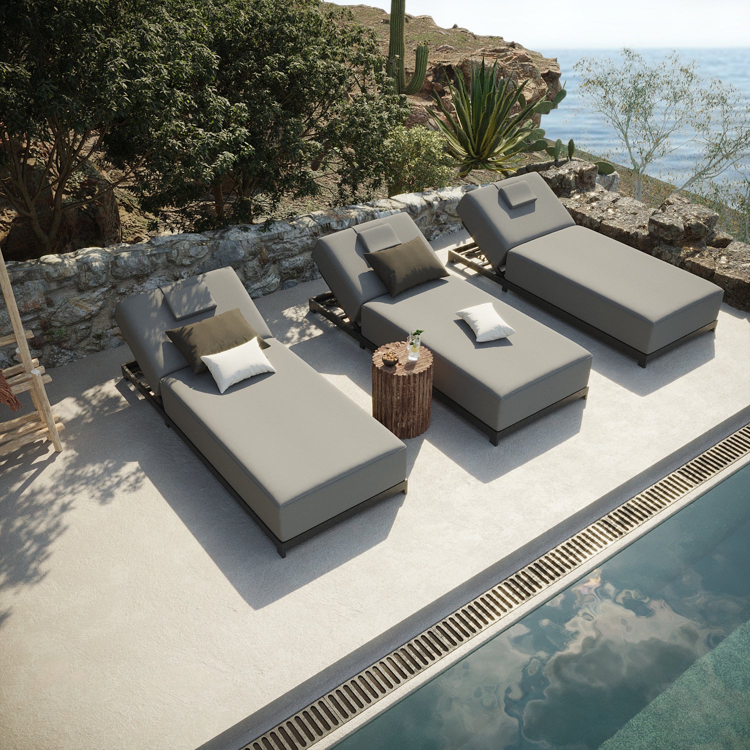 Ayarlanabilir sırt yapısı ve dolgun minder yüzeyi, günün farklı anlarında konforlu bir kullanım sunar. Keskin olmayan net çizgileri ve yere yakın formu, dış mekânda sade bir lüks hissi yaratır.