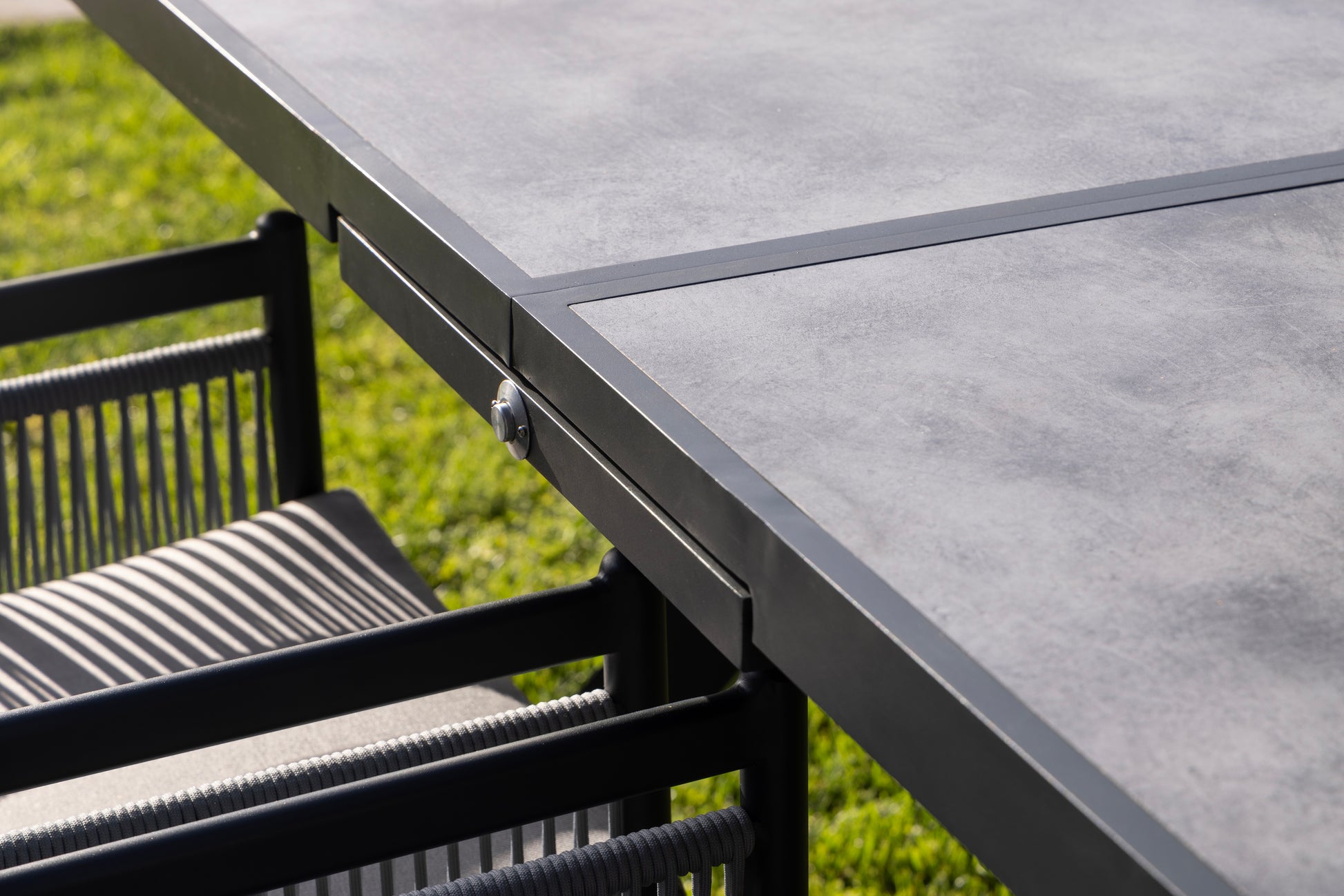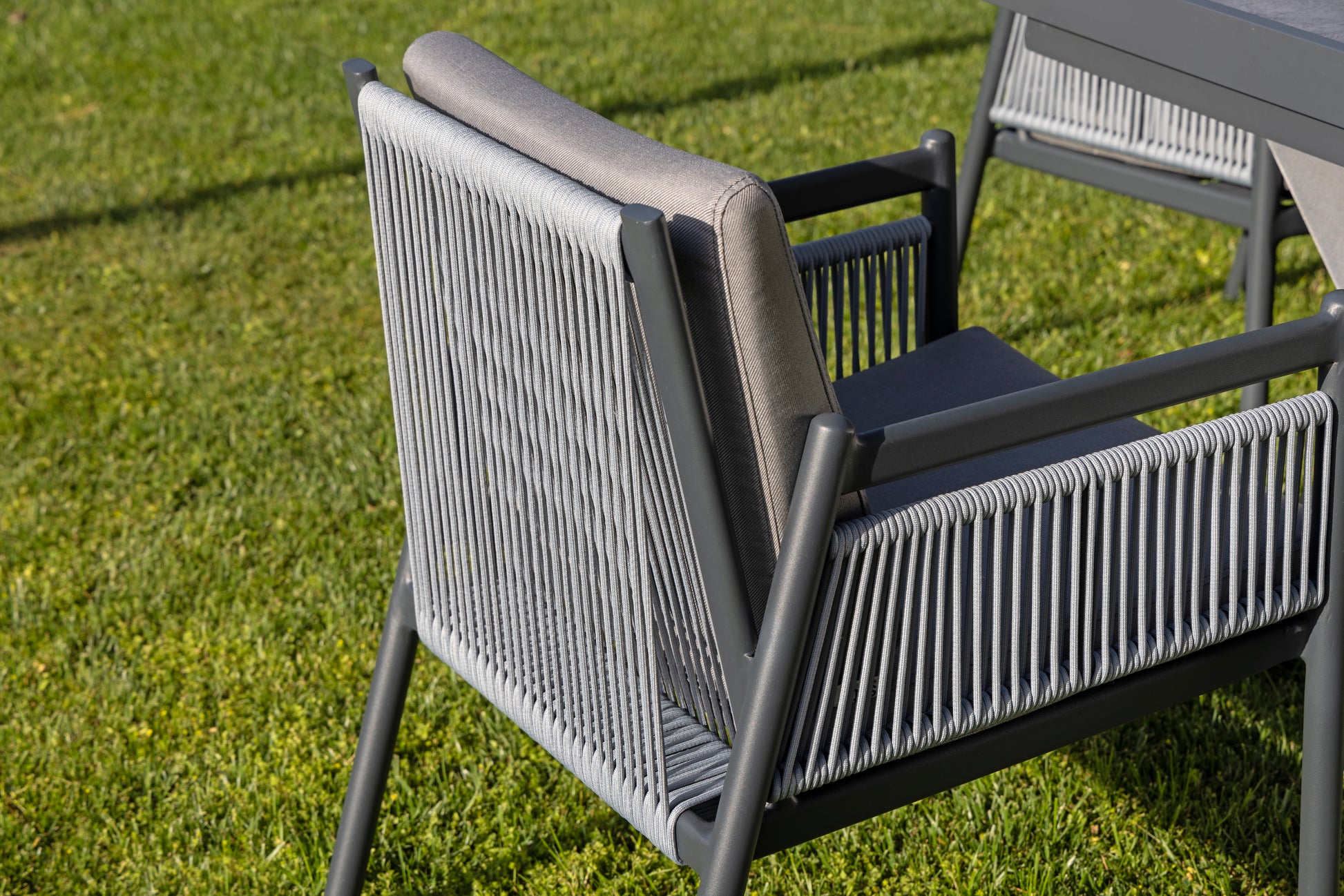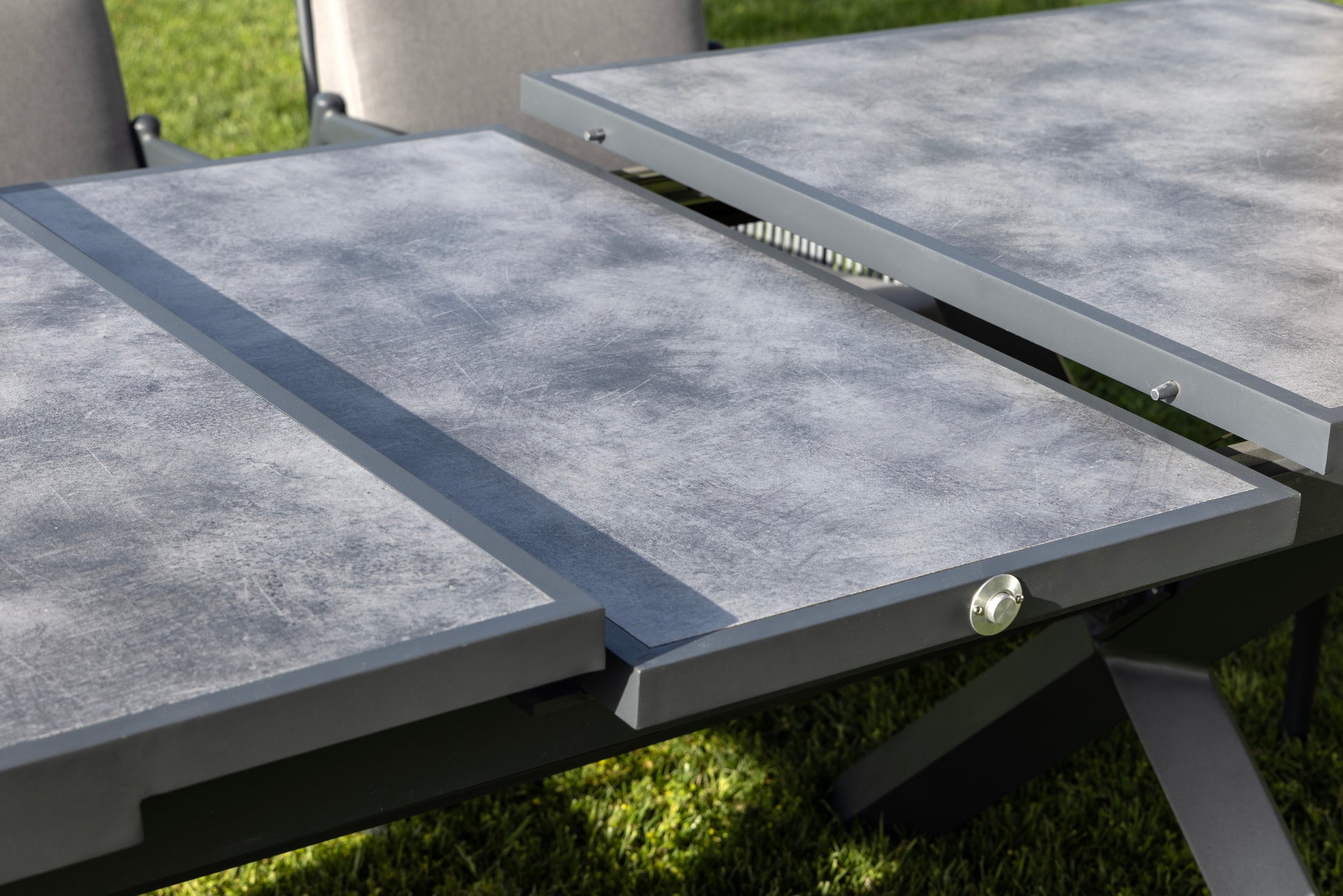 Rex masa takımı, modern çizgileri ve şık tasarımıyla dış mekânlarda estetik bir yemek alanı oluşturur. Alüminyum gövde yapısı ve örgü detaylı sandalyeleri hem dayanıklılık hem de konfor sunarken, geniş masa yüzeyi kalabalık sofralar için ideal kullanım sağlar.