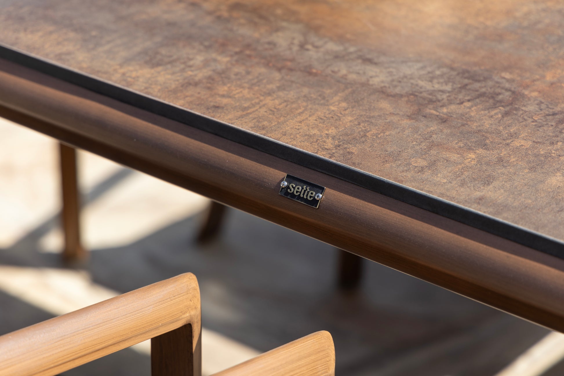 Geniş masa yüzeyi kalabalık sofralar için ideal alan sunarken, sade ve modern çizgileri bahçe ve teras dekorasyonlarına kolayca uyum sağlar. Hem estetik hem de fonksiyonel yapısıyla açık hava kullanımına uygun bir masa takımıdır.